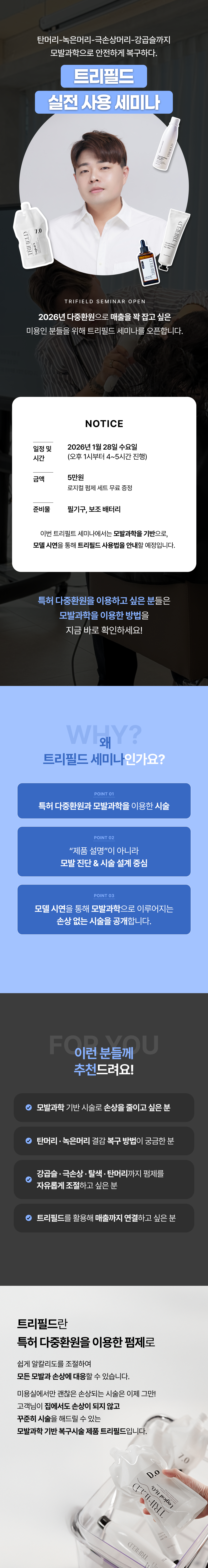 미용인 분들을 위해 트리필드세미나 오픈합니다.