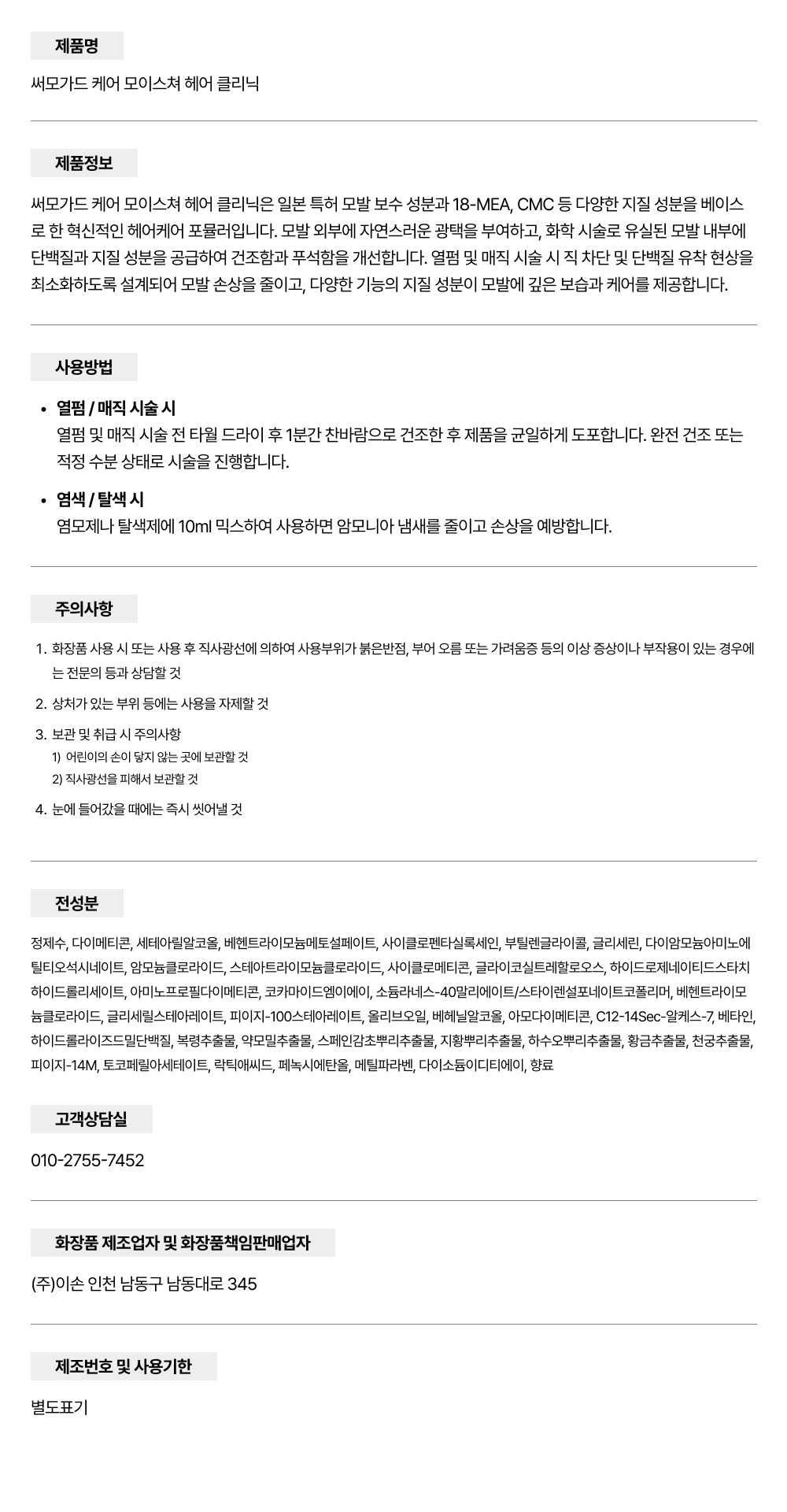 써모가드 케어 모이스쳐 헤어 클리닉은